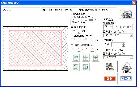 利用されるプリンタ名印刷されたい用紙のサイズなどを設定の上[OK]ボタンをクリックして下さい。