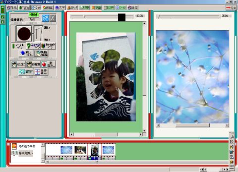 ウインドウ下に、アルバムに登録されている画像の一覧が表示されています。 一覧より、「被写体」となる画像をクリックで選択して下さい。 (今回は「でこぼこ合成」セクションで作成した"氷"の画像を被写体にします)