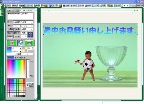 文字の位置を調整する場合には、文字の中央にマウスポインタを合わせてマウスの左ボタンを押さえて下さい。ココからマウスポインタを引きずって、文字の位置を変更した位置でマウスから指を放して下さい。
