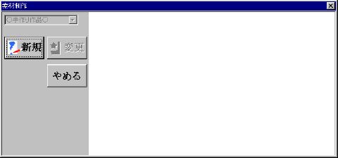 写真のフレーム素材を作成します。画面左部の[素材制作]ボタンをクリックし、表示された「素材制作」ウインドウの[新規]ボタンをクリックして下さい。