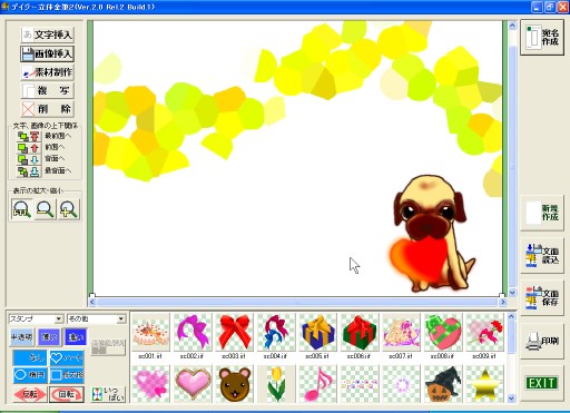 指定した素材が、印刷イメージの左上に挿入されます。