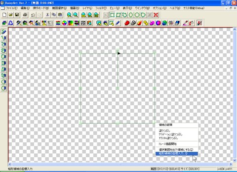 右クリックをして表示されるコンテキストメニューより「矩形領域の座標入力」をクリックして下さい。