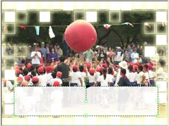 ![]() (四角い領域を白く塗り潰します) 1:領域選択で矩形を選びます。 2:塗り潰す色を選びます。 3:下の画像がうっすら透けるように、塗り潰す濃度を調整します。 4:画面上で左クリックしながらドラッグで四角い領域を作り、緑色の囲み線が出来たら自由に配置し、 塗り潰しボタンを押します。 ※塗り潰した時に作成した緑色の領域選択は、動かさずにそのままにしておきます。