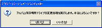 | 4) | 「アルバム保存場所ドライブの変更処理を実行します。」という確認メッセージが表示されます。 よろしければ、[はい]ボタンをクリックして下さい。 |
