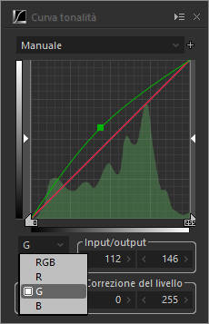 | 1 | Curva delle tonalità | Facendo clic con il mouse si aggiunge un punto (6) sulla curva |