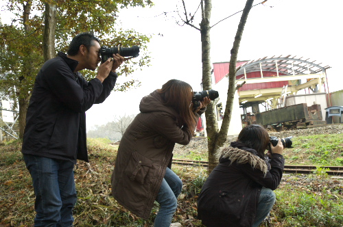 流し撮りの感覚も少しずつ掴み慣れてきた頃に問題が・・・。広角側で撮影した時に画面からSLが切れてしまうことが多いのです。できるだけ画面いっぱいに近づいて来るのを撮ろうと思っていてもシャッターが早すぎて先頭部分しか写っていなかったり、逆に遅れてしまって通り過ぎた後だったりでなかなかうまく撮影できません。広角の撮影ってムズカシイですね。横では同じような位置で広田さんがバッチリ撮影しています。やっぱりセンスの違いなのでしょうか。すると、もうひとつ流し撮りの応用編ということで「ズーミング流し撮り」というものを教えて下さいました。 少し望遠でSLを捕らえてそのままSLの動きに合わせてズームアウト&流し撮りというものです。そう言えば鉄道写真掲示板のページで広田泉さんの動画を見たのを思い出しました。 広田泉さんの動画はこちら ≫ |