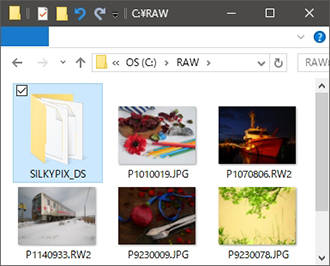 Cada vez que SILKYPIX Developer Studio 8 SE realiza ajustes, los parámetros (valores de ajuste) se guardan automáticamente. No es necesario que guarde la imagen RAW cada vez que se ajusten los parámetros. En la carpeta en la que está guardada la imagen RAW se genera automáticamente una carpeta de nombre “SILKYPIX DS”, en la cual a la vez se genera un archivo con el mismo nombre de la imagen RAW con extensión “.spd” en el que se guardan los parámetros.