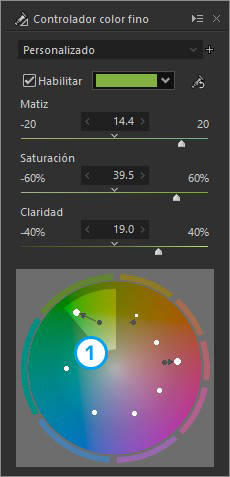 Sirve para ajustar la Matiz / Saturación / Claridad por cada color señalado en el círculo cromático.